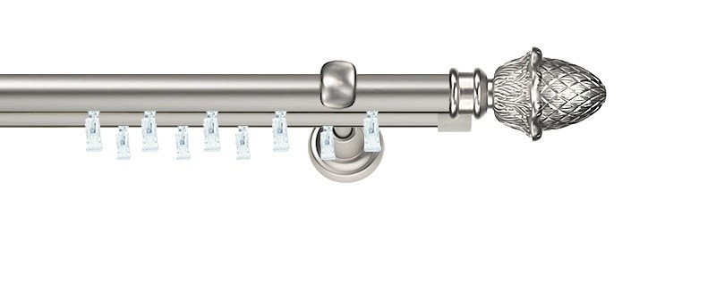 Záclonové tyče jsou kovové, galvanicky pokovené s příslušnou povrchovou úpravou. Odolnost proti oděru zajišťuje kvalitní vrstva laku.