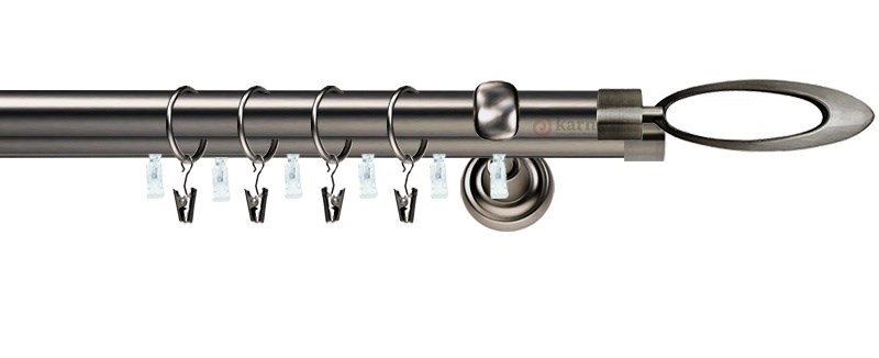 Záclonové tyče jsou kovové, galvanicky pokovené s příslušnou povrchovou úpravou. Odolnost proti oděru zajišťuje kvalitní vrstva laku.