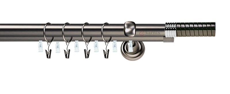 Záclonové tyče jsou kovové, galvanicky pokovené s příslušnou povrchovou úpravou. Odolnost proti oděru zajišťuje kvalitní vrstva laku.