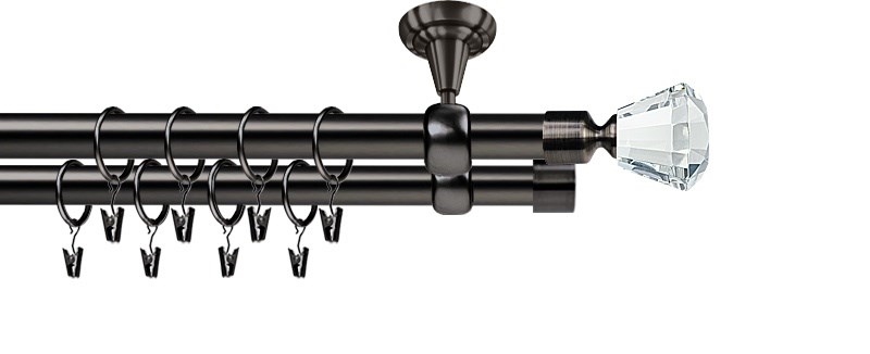 Kovové garnýže dvouřadé stropní 19mm - ROMA CLAREX CRYSTAL antracit