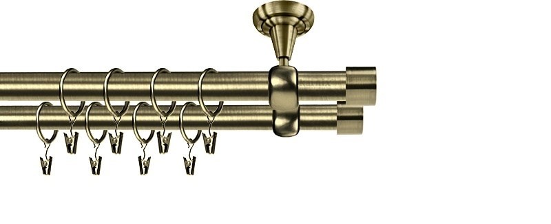 Kovové garnýže dvouřadé stropní 19mm - ROMA LUNA mosaz