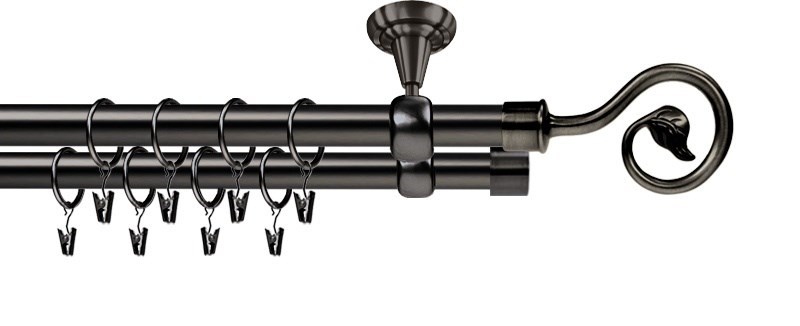 Kovové garnýže dvouřadé stropní 19mm - ROMA SPIRÁLA antracit