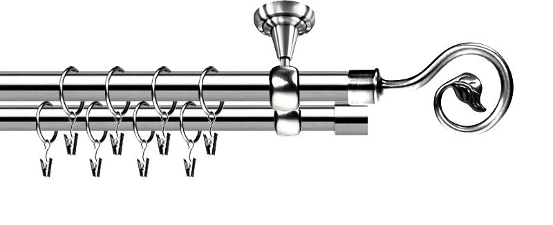 Kovové garnýže dvouřadé stropní 19mm - ROMA SPIRÁLA nerez