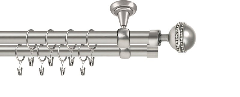 Kovové garnýže dvouřadé stropní 25 a 19mm - ROMA MELBA CRYSTAL chrom