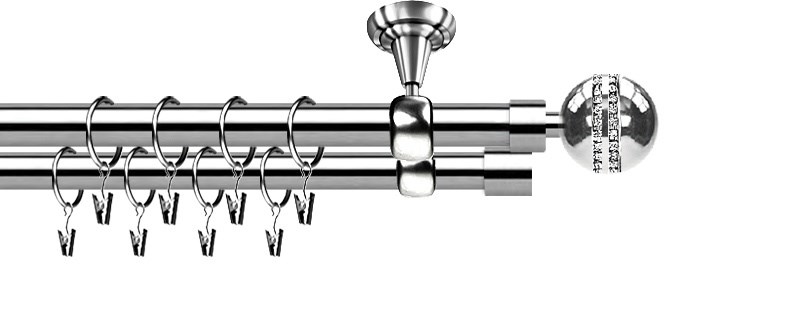 Kovové garnýže dvouřadé stropní 25 a 19mm - ROMA MELBA CRYSTAL nerez